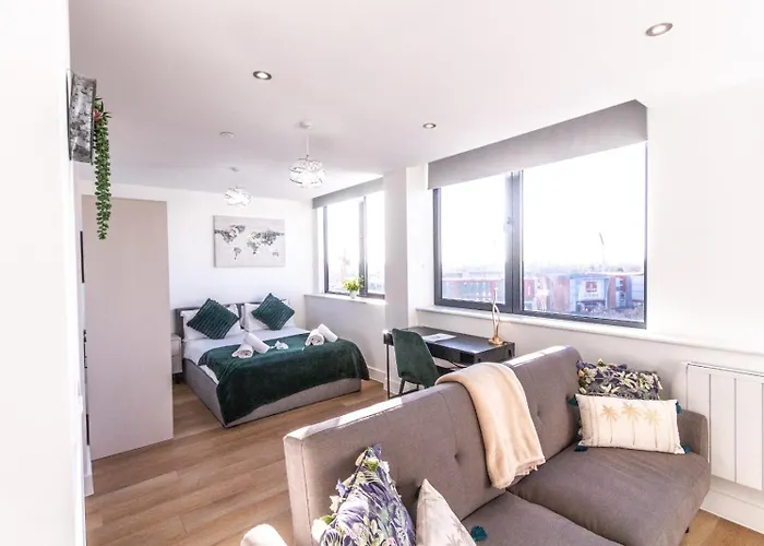 Stylish Studio Apt Overlooking Old Trafford van 34 m² is een geweldige verblijfsplaats in de wijk Old Trafford van Manchester op 10-minuten rijden van het Museum van Manchester. Bij dit appartement zijn Wi-Fi evenals privé parkeergelegenheid beschikbaar.